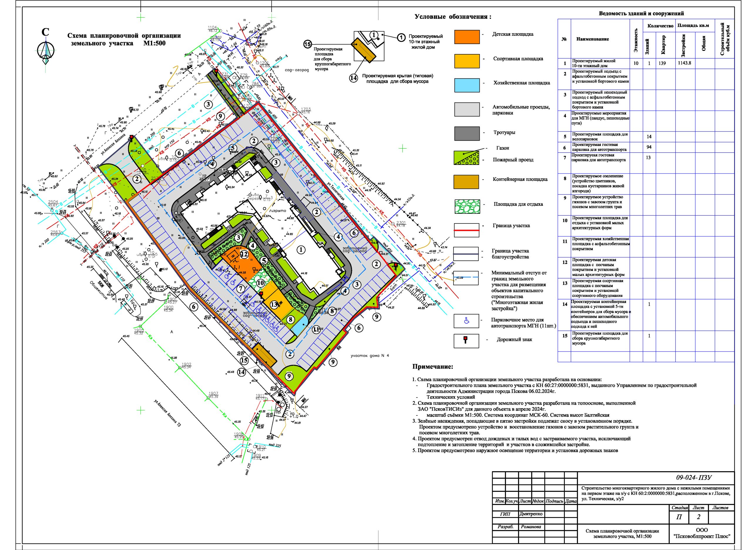 Проектная документация разработана по объекту: «Строительство многоквартирного жилого дома с нежилыми помещениями на первом этаже на з/у с КН 60:27:0000000:5831, расположенном в г. Пскове, ул. Техническая, з/у2»